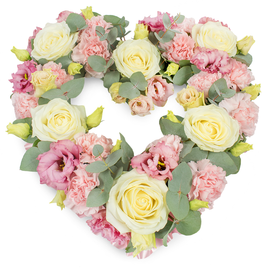 Capture the essence of heartfelt elegance with our refined tribute bouquet. This lush arrangement brings together the purity of white roses, the gentle charm of pink carnations, and the soft allure of pink lisianthus, accentuated by the natural green beauty of eucalyptus leaves. Each stem is hand-selected to ensure only the best quality and maximum freshness, creating an unforgettable floral display that speaks of both luxury and care.